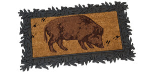 Die robuste Fußmatte Wildschwein aus bester Kokosfaser verfügt zum zusätzlichen Nässeschutz über eine gummierte Rückseite. Dank des jagdlichen Wildschweinmotivs macht sie sich ideal vor der Jagdhütte oder vor der Haustür.