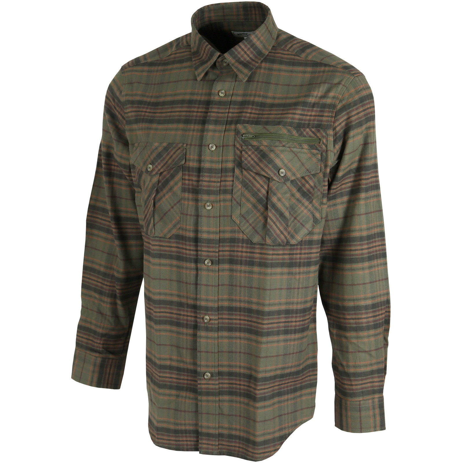 Klassisches Flanellhemd, 2 Pattentaschen, 1 Reißverschlusstasche.