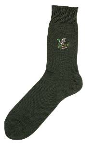 Herrensocke mit bildschöner, naturgetreuer Stickerei. 40% Wolle, 30% Polyacryl, 30% Polyamid.