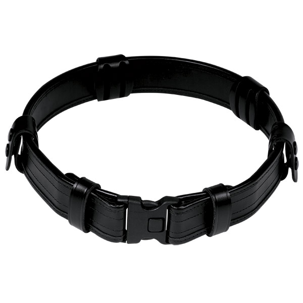 Leder-Ausrüstungsgürtel mit Sicherheitsschloss . Dieser kunststoffverstärkte Ausrüstungsgürtel kann mittels vier Schlaufen auf den vorhandenen Leibriemen adaptiert werden! Länge individuell einstellbar. Breite 50 mm.