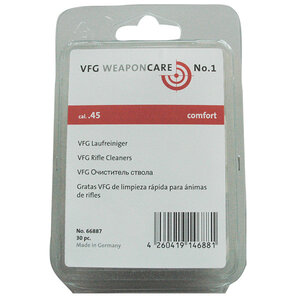 Alle Systeme haben die Gemeinsamkeit, dass dieReinigung, Konservierung und Entölung des Laufs mit Wollfilzelementenerfolgt. VFG-Laufreiniger aus hochwertigem Wollfilz werden – für jedesKaliber im Durchmesser exakt passend – aus natürlichen Schafwollfasernmit Zellwolle hergestellt. Dies erfolgt ausschließlich durch Verfilzenund Verwalken der einzelnen Fasern, also ohne irgend ein zusätzlichesBindemittel.