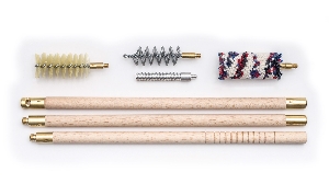 3-teiliger Holzputzstock, Borsten­bürste, ­Wollwischer, Spiraldrahtbürste.