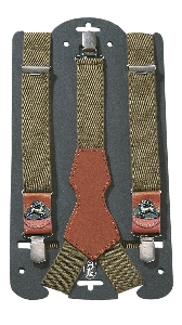 Hosenträger mit Lederverstärkung und Metallemblem, 36 mm breit. Motiv Hirsch.