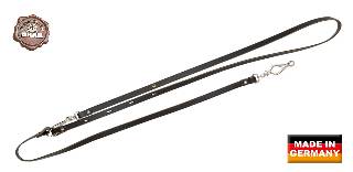 Unsere Oberländerleine aus hochwertigem dunkelbraunem Sattelleder ist universell verwendbar als Führleine, Umhängeleine und als 2,75 m lange Schweißleine. Durch Riemenknöpfe kann das Oberteil verstellt und so der Körpergröße des Hundes angepasst werden. Die Leine ist stabil und reißfest und liegt gut in der Hand.