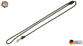 Die olivgrüne Umhängeleine Landlord mit Bolzenhaken, wird in Handarbeit aus rundem, im Durchmesser 11 mm starken Liros Safe Pro Halbstatikseil gefertigt. Dieses Seil stammt aus der Industrieklettertechnik und besitzt eine Bruchlast von 2850 kg bei einer Dehnung von 4,2 % . Das Safe Pro Seil ist witterungsbeständig und abwaschbar. Zur optimalen Haltbarkeit werden alle Nähte mit Handnaht gefertigt.
