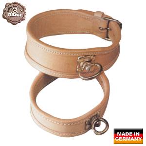Die handgenähte Schweißhalsung aus ökologisch gegerbtem und extrem reißfestem Fahlleder verfügt über einen extra starken Messingwirbel. Zum zusätzlichen Schutz des Hundes ist die Halsung lederdoubliert.