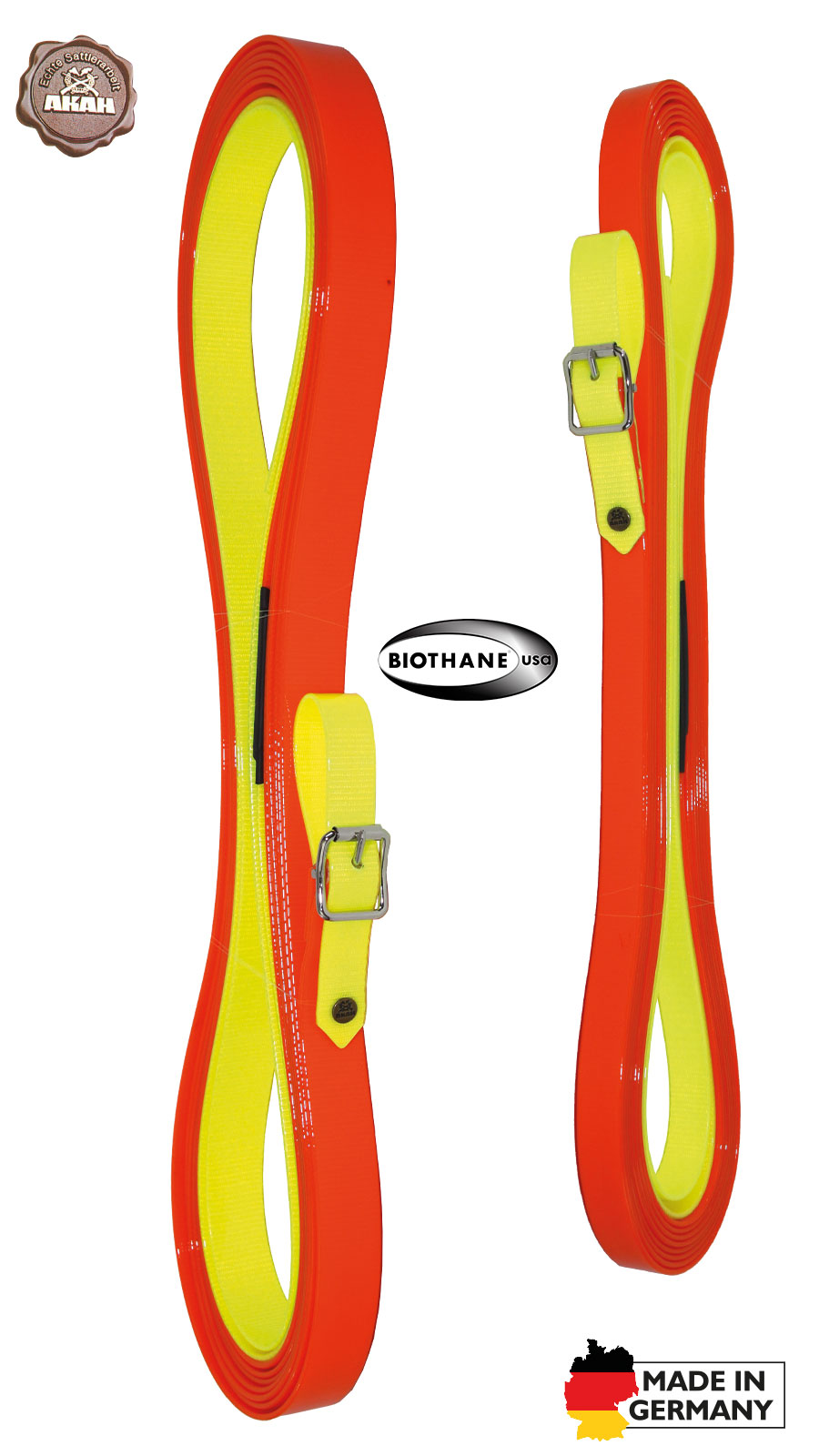 AKAH verwendet nur das US-patentierte BioThane®- keine Billigimporte. All unsere Leinen und Halsungen sind garantiertin unserer AKAH Sattlerei in Gummersbach gefertigt.