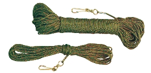 Unsere Feldleine aus aus Polyamid-Flechtschnur, mit Karabiner­haken, praktisch unverwüstlich.