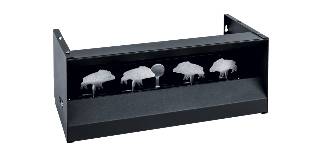 4 Pendelziele werden durch Treffer umgekippt und durch einen Treffer auf das Mittelziel wieder aufgerichtet.