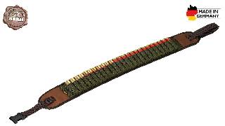 Der AKAH Patronengürtel aus wasserfestem grünem Cordura mit Elchlederbesatz ist ein zuverlässiger und robuster Begleiter für die Jagd!
