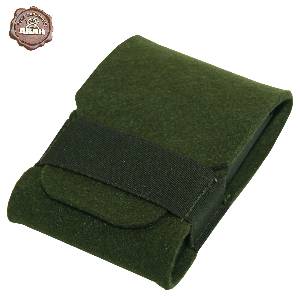 Dieses AKAH-Patronenetui aus grünem Filz, ist dafür konzipiert, die RUAG Patroneneinsätze aufzunehmen (Norma, RWS). Internationales Geschmackmuster: WIPO78577
