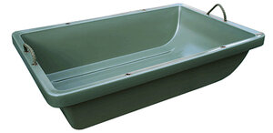 Wild- und Allzweckwannemit schlittenförmigem Bug und eingearbeiteten Kufen zum leichteren Ziehen der Wanne über den Boden. Die glatte Oberfläche ermöglicht das ein­fache Reinigen der Wanne. Mit vier Ösen für Seildurch­züge, zwei Trageschlaufen.10 Jahre Materialgarantie! Aus unverwüstlichem PE Material.