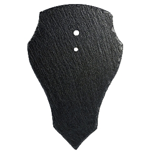 Der hochwertige Naturschiefer hebt die Trophäe optimal hervor und verleiht ihr einen zeitlos eleganten Look. Die Trophäenschilder sind dünner als herkömmliche Gehörnbrettchen aus Holz, wodurch die Trophäe deutlich besser zur Geltung kommt. Die Schilder sind handgefertigt – mit interessanter Lichtbrechung auf der strukturierten Oberfläche sowie den natürlichen Bruchkanten – und sie werden mit Lochbohrungen zur Trophäen- / Wandmontage ausgeliefert. Zudem sind sie imprägniert zum Schutz vor Verschmutzungen und unempfindlich gegen Fingerabdrücke.