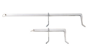 Zum Spreizen des Brustkerns oder der Vorderläufe von Schalenwild. Die beiden Fleischhaken werden in die gegenüberliegenden Wildhälften eingehängt & einfach auseinander gezogen. Die Fixierung erfolgt wie bei einer Schraubzwinge durch Klemmreibung. Durch das Spreizen erfolgt eine wesentlich bessere Luftzirkulation im Brust- und Bauchraum.