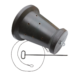 Die Kegelform verhindert ein Wegrollen von der Futterstelle. Fassungsvermögen ca. 18 kg Futtermittel wie Mais, ideal zur langen Beschäftigung von Schwarzwild an Kirrungen oder Ablenkfütterungen. Frostbeständig, Bruch und Schlagzäh, Farbe braun, Löcher mit Metallösen 14 mm verstärkt. Incl. Befestigungsseil und Bodenanker - ein idealer Diebstahlschutz. 10 Jahre Materialgarantie.