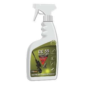 CICO® GUNCLEANER GC 55 ist ein alkalischer Hochleistungs-Reiniger für Kurz- und Langwaffen, auch für Schalldämpfer. Schmauch- und Schwarzpulverrückstände, Öl- und Fettablagerungen, alte Verharzungen sowie Ablagerungen von Blut und Insekten werden schnell und zuverlässig entfernt.